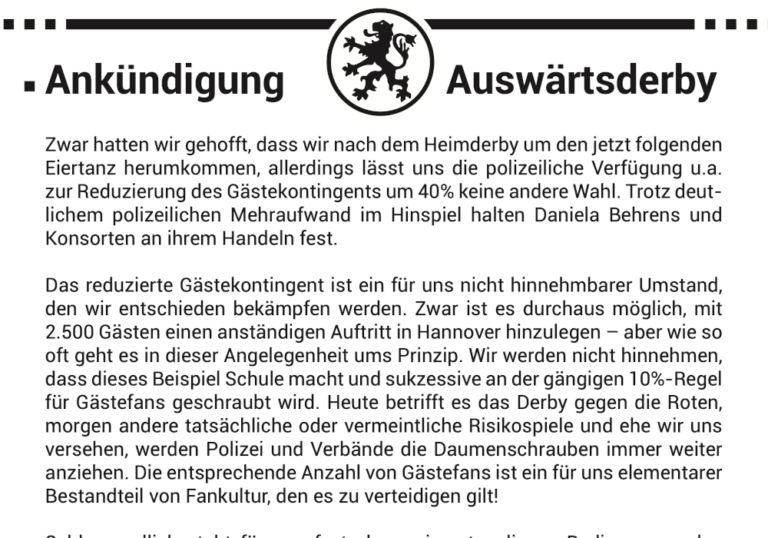 Ultrà-Szene BTSV Eintracht gibt Marschroute für das Derby heraus