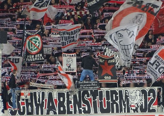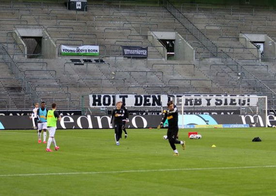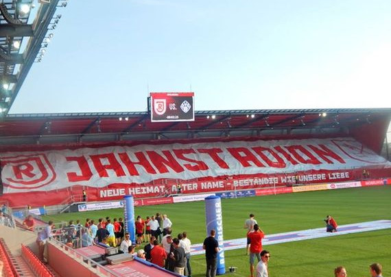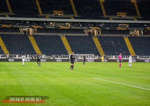 Spruchband der Ultras Frankfurt im leeren Waldstadion