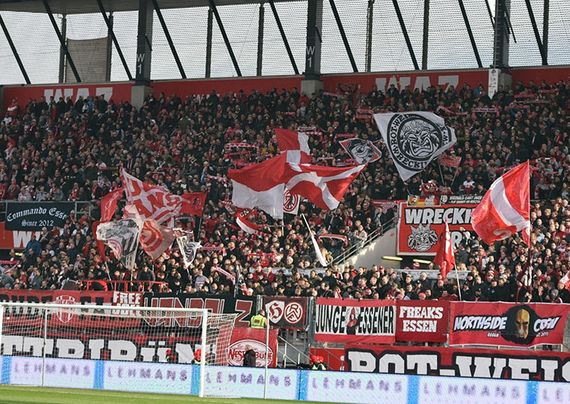 RWE-Fans gehen im heimischen Stadion in den Gästeblock