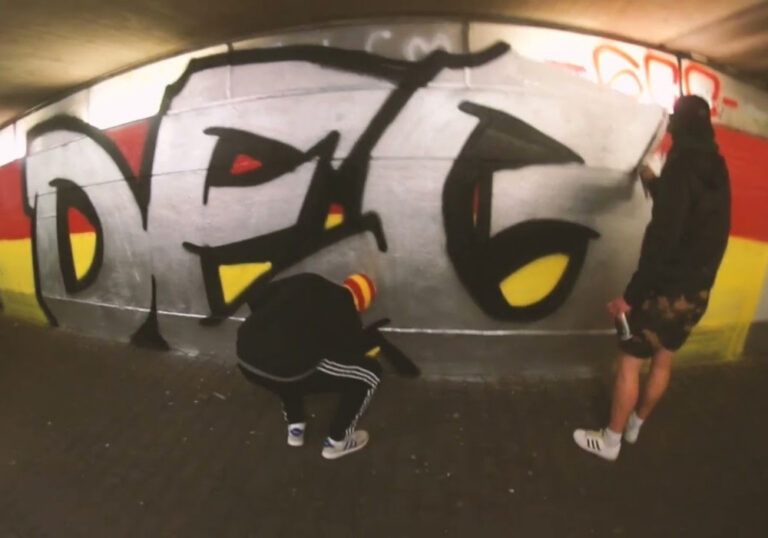 Auseinandersetzung in der Fußgängerzone, Pyroshow & Graffiti im Gästeblock