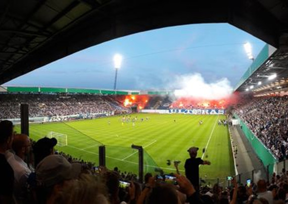 Standort der Ultras Krefeld bei Heimspielen in Düsseldorf