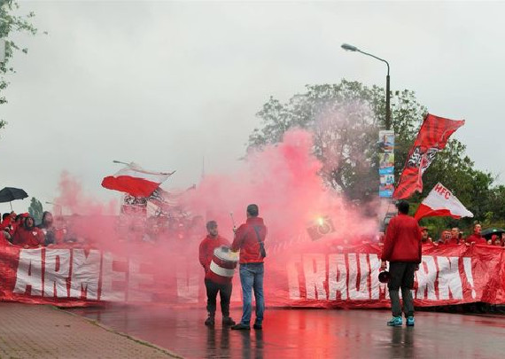 Ultras des VfL Wolfsburg mit Pyroshow in Stuttgart