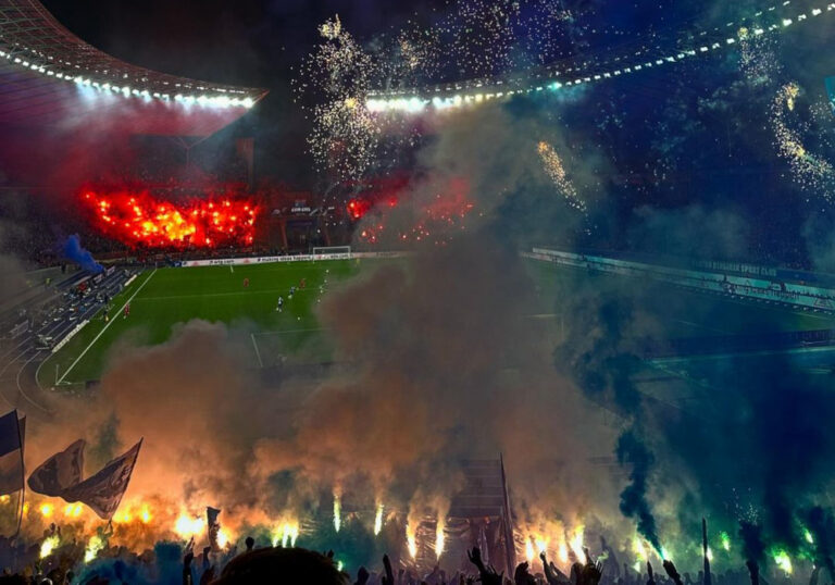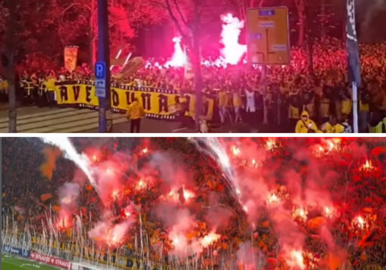 „Ave Dynamo“-Fanmarsche & Feuerwerk im K-Block