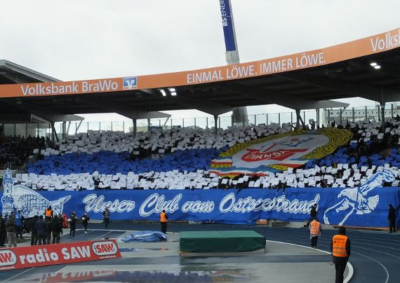 FCH-Fans in Schwarz mit „Unser Club vom Ostseestrand“-Choreo