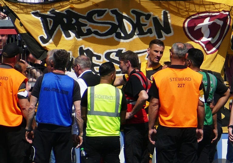Unnötige Spielunterbrechung wegen Zaunfahne von Dynamo-Fans