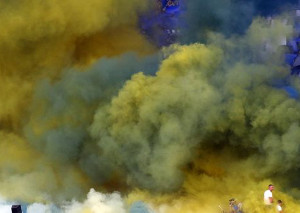 Platzsturm, Pyro, Choreos & Corteo beim Derby