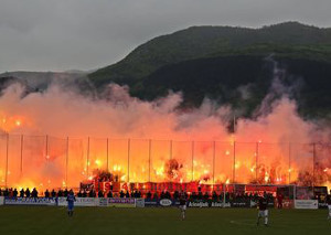 Pyroaktionen beim Sarajevo-Derby