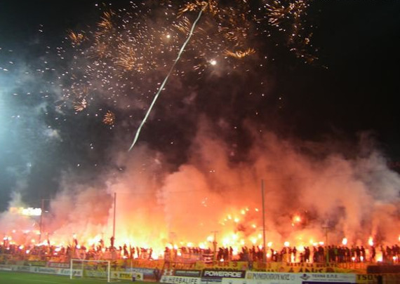 Imposante Pyroaktionen von Super 3 bei Derbys gegen PAOK