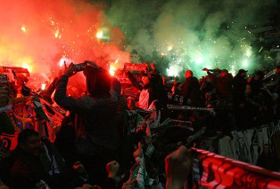 Pyroshow der St. Etienne Fans im Old Trafford