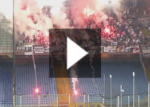 Pyroaktion und Marsch der Eintracht-Fans in Genua