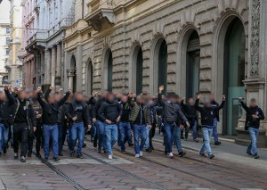 Impressionen vom Auftritt der Rapid Wien-Fans in Mailand