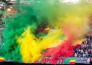 Corteos, Choreo & Pyro in Reaggae Farben