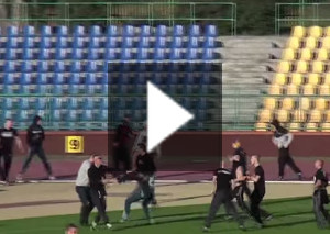 Video: Bannerklau sorgt für Schlägerei im Innenraum