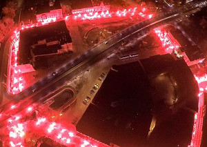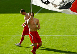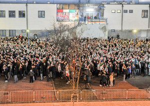 Vereinslogo mit Bengalos in die Stadt geschrieben