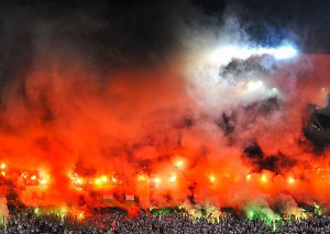 Arka Gdynia Fans erleuchten gesamte Fankurve