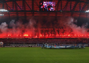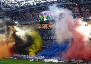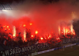 Pyroshows & Blockfahnen bei Legia gegen Lech