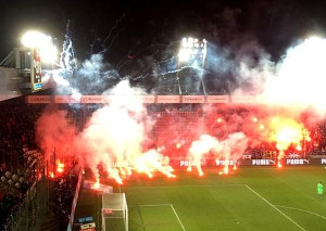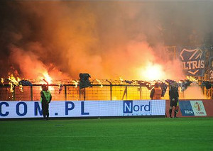 Gästeblock bei Krakauer-Derby unter Pyro-Beschuss