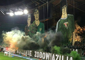 Choreo & Pyro zu 70 Jahre Śląsk Wrocław bei Derby