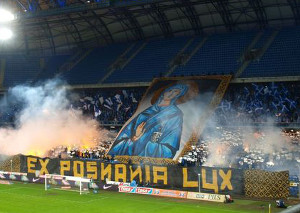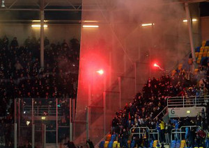 Choreo & Pyroshow der Lech Poznan Fans