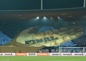 Choreografie & Pyro beim Derby im Pokalhalbfinale