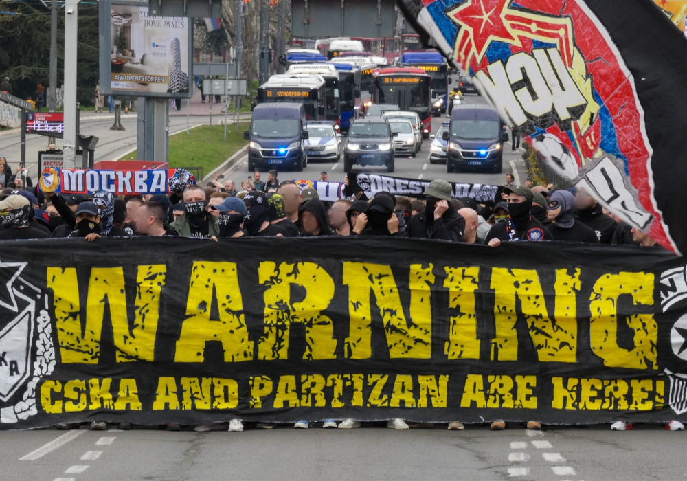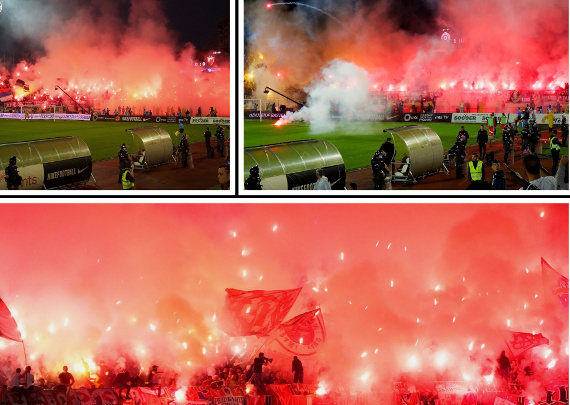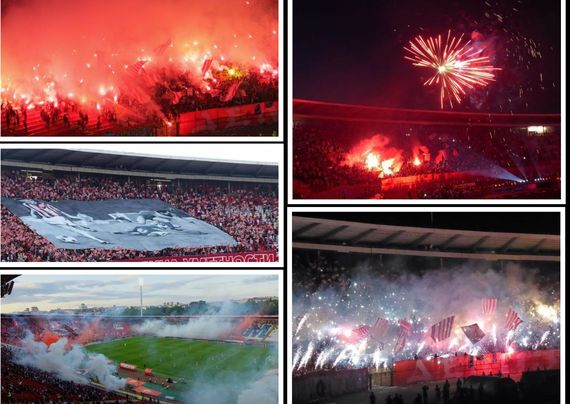 Auseinandersetzungen, Choreos, Pyro, neue Heimfahne der Grobari, geklaute Zaunfahnen & provokante Banner bei 177. Belgrader Derby zwischen FK Partizan und Roter Stern