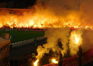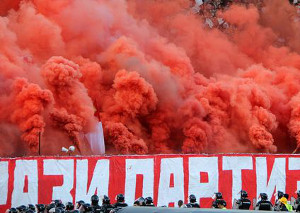 Roter Stern Ultras zeigen Pyroshows