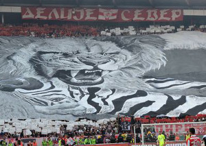 Bissiger Löwe & reichlich Pyro beim Belgrader Derby