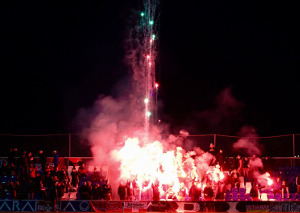 Blockfahne & Rauch der Fanszene Haching