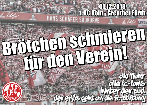 Nachdem Toni Schumacher, Vize-Präsident des 1. FC Köln, auf der letzten Mitgliederversammlung in einer hitzigen Debatte über einen Satzungsänderungsantrag erklärte: „Ihr habt noch nie Brötchen für den Verein geschmiert!“, hat sich die Wilde Horde diesen Satz zu Herzen genommen und eine soziale Aktion zum Thema ausgerufen.