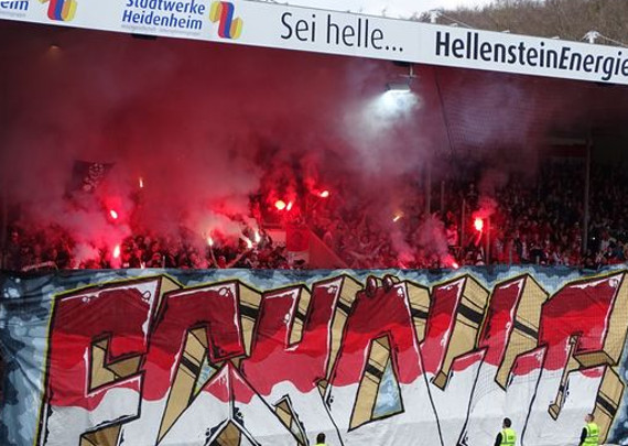 Der 1. FC Köln war gestern im Albstadion beim 1. FC Heidenheim zu Gast. Im dortigen Gästeblock leiteten die mitgereisten Fans aus der Domstadt die Zweitligapartie mit einem Konfetti-Intro und einer Pyroshow ein. Dies geschah hinter einem „FC Kölle“-Banner im Graffiti-Style.