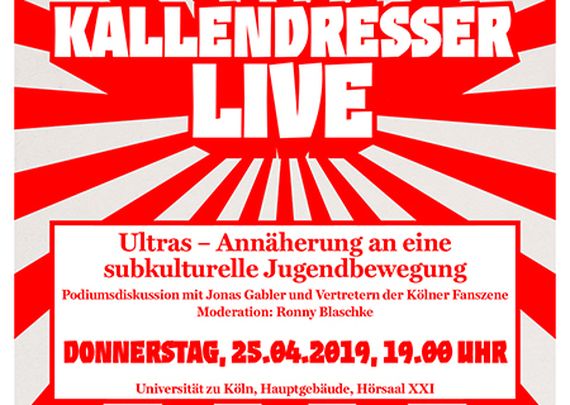 Die Kölner Ultras von den Coloniacs organisieren am 25. April 2019 eine Podiumsdiskussion zum Thema „Ultras - Annäherung an eine subkulturelle Jugendbewegung“. Die Veranstaltung findet im Hauptgebäude der Universität zu Köln in Hörsaal XXI statt. Beginn ist um 19:00 Uhr.