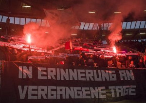 Ultras des 1. FSV Mainz 05 nutzten das Auswärtsspiel am Samstag im Niedersachsenstadion bei Hannover 96, um mit einer zweiteiligen Aktion an verstorbene Mainzer Ultras zu Gedenken. „In Erinnerung an vergangene Tage“, hieß es im ersten Teil der Aktion.