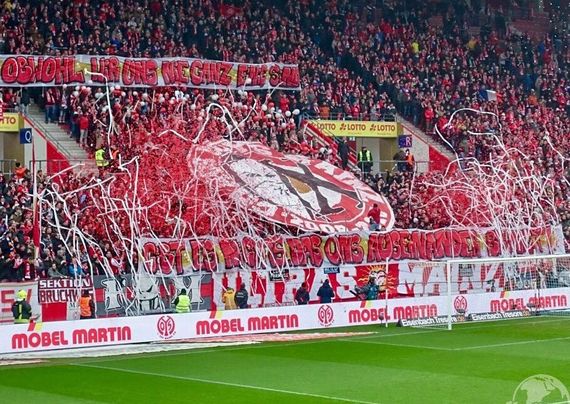 Fans von Mainz 05 zeigten am Sonntag beim Heimspiel gegen den VfB Stuttgart eine Choreografie, die unter dem Motto „15 Jahre Aufstieg“ stand (Faszination Fankurve berichtete). Der Q-Block Mainz machte nun öffentlich, dass diese Choreografie insgesamt 14.569 Euro kostete.