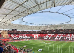 In Leverkusen soll am 11. Mai 2019 das 40. Jubiläum des Aufstiegs von Bayer 04 Leverkusen in die 1. Bundesliga gefeiert werden. Beim heutigen Heimspiel gegen Rasenballsport Leipzig sammelt der Kreativ Schwarz-Rot e.V., der in Leverkusen für die Durchführung von Choreografien zuständig ist, wieder Geldspenden.