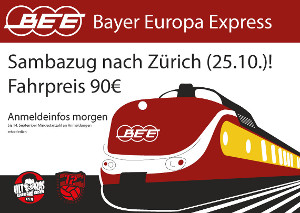 Bayer Leverkusen ist am 25. Oktober 2018 in der Gruppenphase der Europa League im Stadion Letzigrund beim FC Zürich zu Gast. Die Ultras Leverkusen und der Dachverband Nordkurve 12 wollen zu dem Spiel den ersten Europapokal-Sonderzug in der Geschichte der Leverkusener Fanszene organisieren.