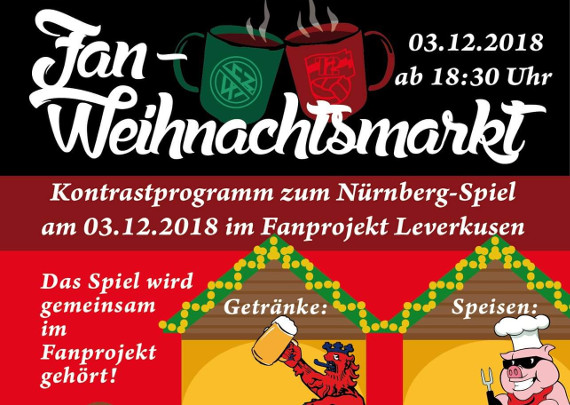 Bayer 04 Leverkusen empfängt morgen den SC Freiburg im heimischen Ulrich-Haberland-Stadion. Im Anschluss an das Bundesliga-Spiel organisieren die Ultras Leverkusen und die Nordkurve 12 wieder einen Weihnachtsmarkt am Leverkusener Fanprojekt. Beginn der Veranstaltung ist um 18:30 Uhr.
