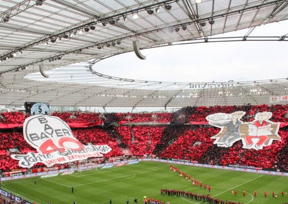 Im Halbfinale des DFB-Pokals empfing Bayer 04 Leverkusen gestern den Rekordpokalsieger FC Bayern München. Die Bayer 04-Fans leiteten das Halbfinale mit einer Choreografie in der Nordkurve und auf der Osttribüne ein. Die Aktion bestand aus tausenden Papptafeln.