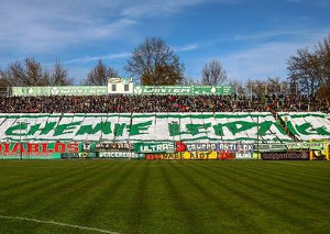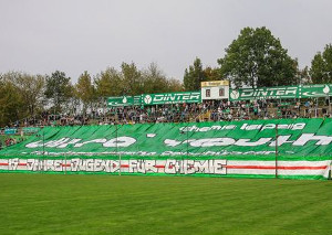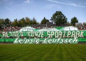 Im sächsischen Landpokal kam es gestern zum Halbfinale zwischen dem VfB Auerbach und der BSG Chemie Leipzig. Vor Anpfiff des Spiels zeigten beide Fanszenen eine Choreografie. Im Gästeblock wurden auf der Gegengerade zahlreiche weiße und grüne Fahnen geschwenkt.