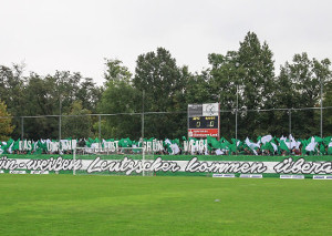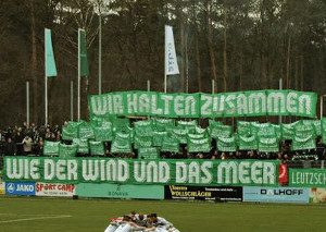 Die BSG Chemie Leipzig war am vergangenen Sonntag im Friesenstadion beim FSV Union Fürstenwalde zu Gast. Die Chemie-Fans, die ihr Team nach Fürstenwalde begleiteten, zeigten vor Ort eine Choreografie, die unter dem Motto „Wir halten zusammen wie der Wind und das Meer“ stand.