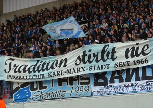 In dieser Woche wurde beim Chemnitzer FC ein Insolvenzverfahren eröffnet. Der Verein, der somit aus der 3. Liga absteigen wird, soll Verbindlichkeiten in Höhe von etwa 2,5 Millionen Euro haben, worum sich nun der Insolvenzverwalter kümmert. Die Fanszene Chemnitz will ihrem Verein auch in tieferen Ligen die treue halten.