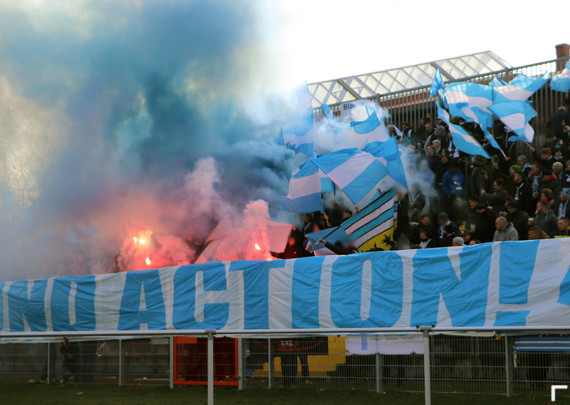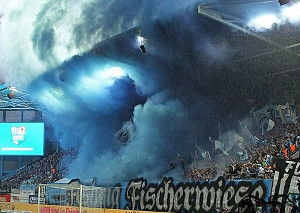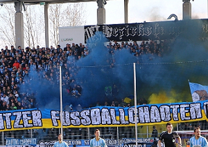 Der Chemnitzer FC war gestern in der Regionalliga Nordost in der Holzwaren-Simundt-Kampfbahn beim Bischofswerdaer FV zu Gast. Weil den Gästefans aus Chemnitz die Durchführung einer Choreografie verboten war, wurde eine Pyroshow durchgeführt.