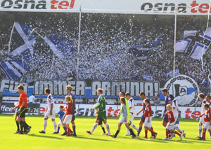 Dem DSC Arminia Bielefeld ist am Samstag der Aufstieg in die 2. Bundesliga gelungen. Nach dem 1:0-Heimsieg über den VfL Osnabrück feierte die Mannschaft mit den Fans erst auf dem Spielfeld der Bielefelder Alm. Später wurden die Feierlichkeiten am Rathaus fortgesetzt.
