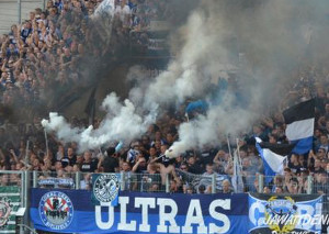 Die DSC Arminia Bielefeld Fans nutzten das gestrige Auswärtsspiel in Braunschweig für eine große Pyroshow. Vor Anpfiff der Zweitligapartie wurden zahlreiche Bengalische Fackeln gezündet. In der Nacht vor dem Spiel kam es laut Polizei zu einem Angriff auf drei Arminia Fans in Braunschweig.