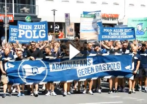 Am Samstag demonstrierte in Bielefeld eine vierstellige Anzahl an Personen gegen das neue Polizeigesetz, das im September für Nordrhein-Westfalen verabschiedet werden soll. Mit bei der lokalen Demo in Bielefeld dabei waren auch Teile der Fanszene von Arminia Bielefeld, die in einem eigenen Block marschierten.