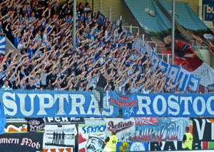 Die Suptras Rostock haben angekündigt nach Überlegungen das Auswärtsspiel bei RB Leipzig zu besuchen. Als Zeichen der Ablehnung gegen den Retortenclub wollen die Rostocker die ersten sieben Minuten der Partie die Gästekurve frei lassen.
