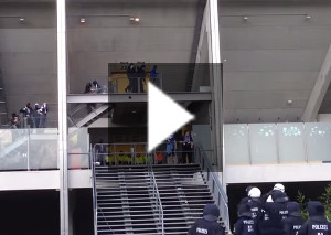 Anlässlich der Drittligapartie zwischen Rostock und Bielefeld entwendete ein Hansa-Fan eine Zaunfahne der Bielefelder-Fans, indem er um eine Absperrung zum Gästeblock kletterte. Die Aktion wurde aus dem Gästeblock gefilmt.