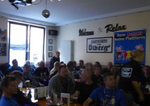 Die Black Blue Fighters blieben dem Auswärtsspiel des SC Paderborn am Freitag in Leipzig aus Protest gegen Rasenballsport Leipzig fern und organisierten wie angekündigt eine Alternativveranstaltung in einer Kneipe in Paderborn. Dort wurde das Spiel im Fernsehen verfolgt.