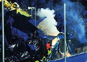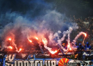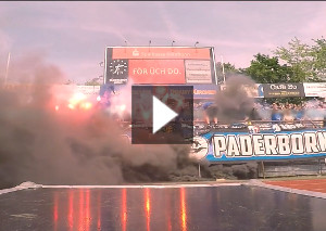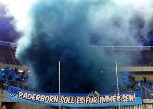 Vor dem gestrigen DFB-Pokalspiel zwischen dem SC Paderborn und dem VfL Bochum zeigten die SCP-Fans eine Choreografie, die unter dem Motto „Spielt mutig und stolz für unsere Pfauenstadt, heute macht ihr jeden Gegner platt!“ stand. Hinter der Fankurve wurden dazu einige Feuerwerksraketen abgeschossen.