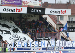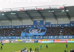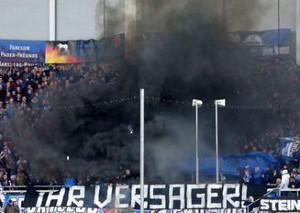 Der SC Paderborn wurde nach dem Abstieg aus der 1. Bundesliga nur eine Saison später als Tabellenletzter der 2. Bundesliga in die 3. Liga durchgereicht. Die SC Paderborn Fans quittierten den erneuten Abstieg mit einem „Ihr Versager“ Plakat und schwarzen Rauchbomben.