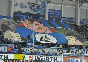 Am vergangenen Wochenende ins Stadion des SC Paderborn eingebrochen. Dabei wurden mehrere Zaunfahnen der SCP-Fanclubs gestohlen. Zaunfahnen der aktiven Fanszene bzw. der Ultras sind nicht betroffen. Geklaut wurden circa zehn Zaunfahnen, die dauerhaft in der Fankurve angebracht waren.